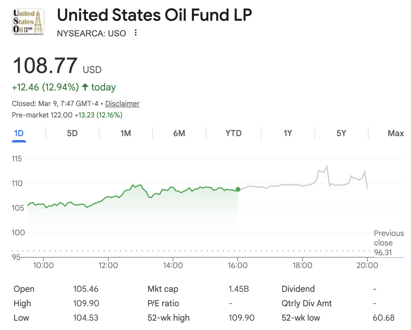 One of the most notable periods for USO stock came in 2020, when oil prices collapsed amid a historic demand shock. Because the fund is tied to futures contracts, that period exposed the risks of commodity-based products during extreme market stress. Although USO stock later recovered along with oil prices, its long-term performance has not always matched the full rebound in physical crude.